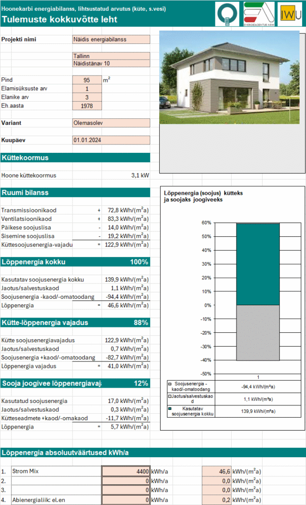 Sobib hoonekarbi realistlikuks energeetiliseks hinnanguks ja energeetiliste meetmete (sh PV-generaatorid, EA, vm) rakendamise energeetiliseks hinnanguks.